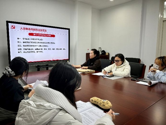 我院党政办公室主任谢飞围绕发展党员程序开展专题培训,结合工作实际对《规范党员发展程序 提升党员发展质量》进行详细解读。她强调党员发展材料需确保真实、规范、严谨,提醒入党积极分子要定期主动向党组织作思想汇报,重视思想汇报的质量,立足学习、工作实际谈认识、谈成长,切实将理论学习成果转化为思想自觉和行动自觉。