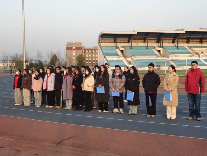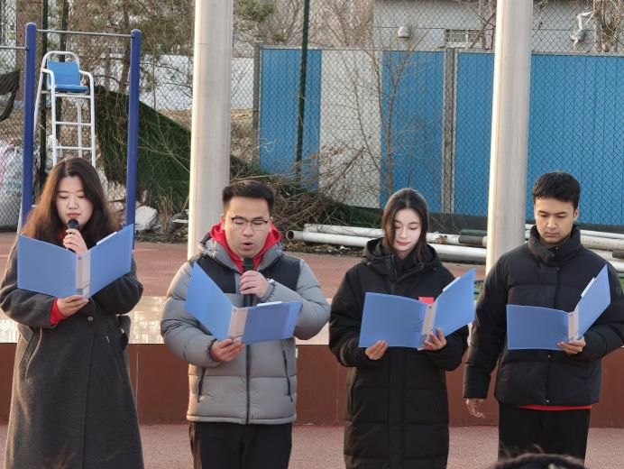 国旗飘扬,信仰昭彰;齐颂中华,青春昂扬。3月16日,我院在丰台校区开展以“凝聚奋进力量,共谱时代新篇”为主题的“齐颂中华”国旗下的“铸牢”课堂活动。学院2025级全体同学在院党委副书记兼副院长师英杰以及院团委书记、专职辅导员李剑章老师的带领下,在国旗下齐唱国歌、致敬祖国。