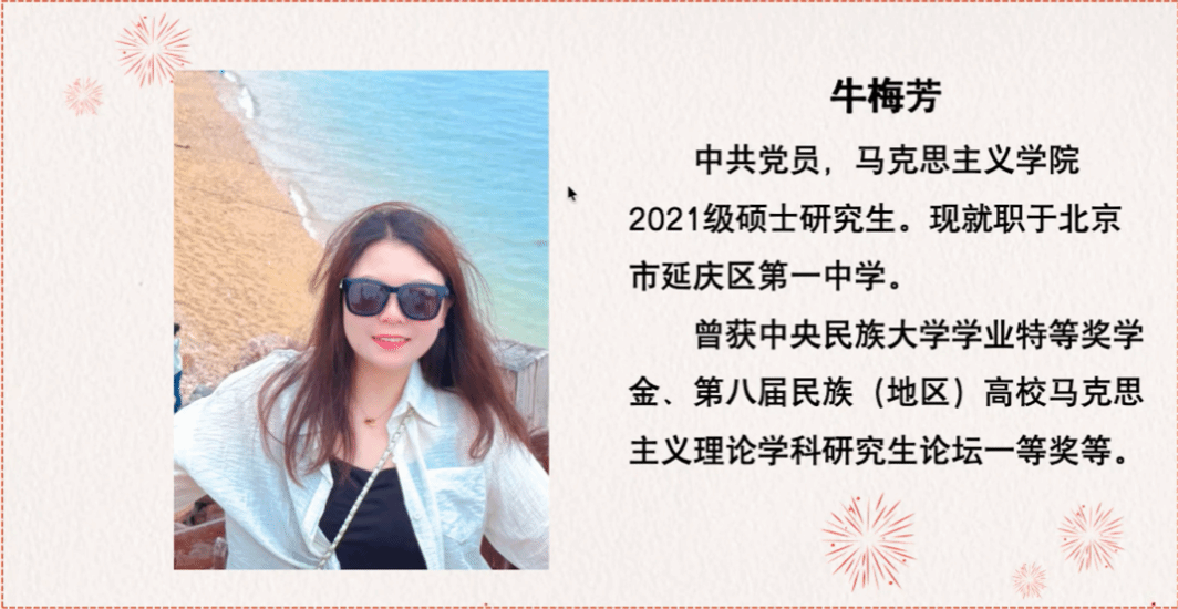 现就职于北京市延庆区第一中学的2021级硕士生牛梅芳围绕备考书籍选择、教学涉及与试讲、结构化面试要点和入职感受等内容分享了宝贵经验,并勉励同学们坚定“立德树人”的初心使命。