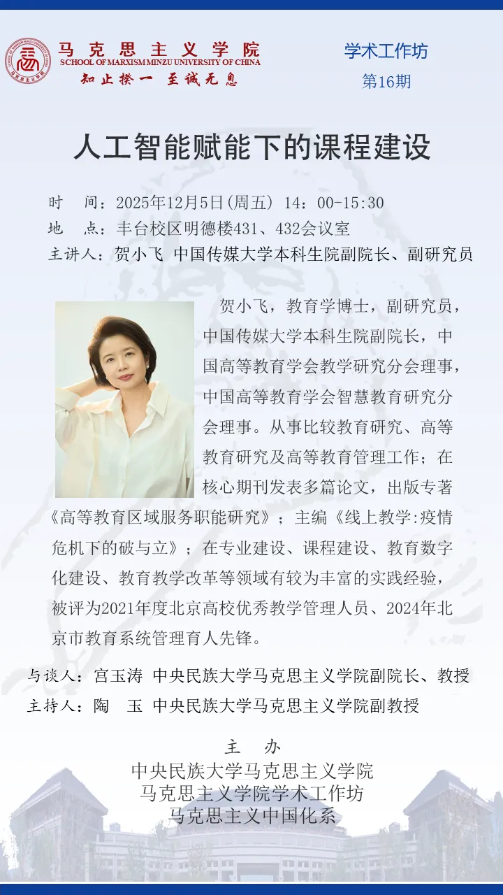 贺小飞,教育学博士,副研究员,中国传媒大学本科生院副院长,中国高等教育学会教学研究分会理事,中国高等教育学会智慧教育研究分会理事。从事比较教育研究、高等教育研究及高等教育管理工作;在核心期刊发表多篇论文,出版专著《高等教育区域服务职能研究》;主编《线上教学 疫情危机下的破与立》;在专业建设、课程建设、教育数字化建设、教育教学改革等领域有较为丰富的实践经验,被评为2021年度北京高校优秀教学管理人员、2024年北京市教育系统管理育人先锋。